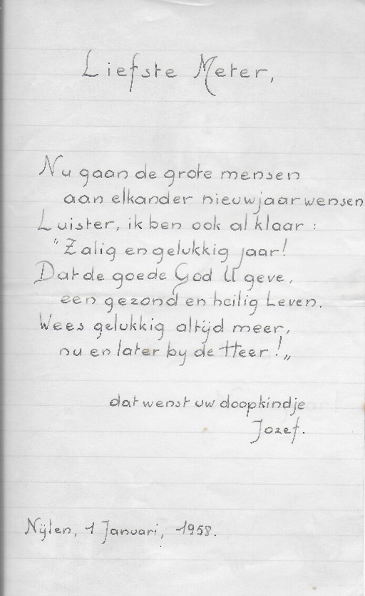 Nieuwjaarsbrief van Jozef (voorzijde) – Nijlen, 1 januari 1958.